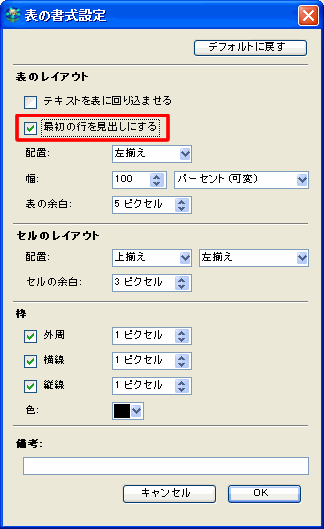表の先頭行を列見出しにして、各ページの先頭で表示されるようにするには、以下の操作を行います。