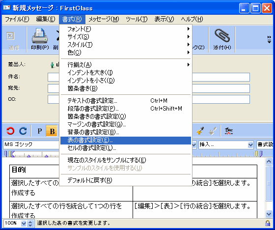 2       [書式]>[表の書式設定]を選択します。