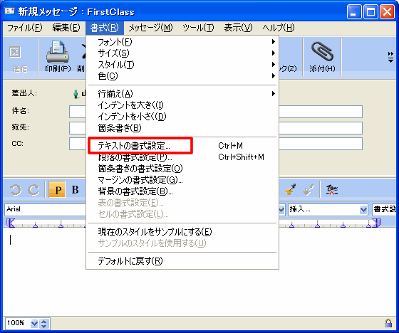 • [書式]>[テキストの書式設定]を選択して、適用するスタイルを選択する