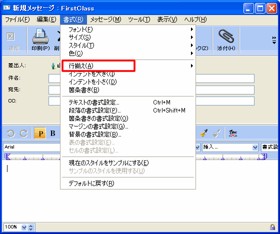 • [書式]>[行揃え]を選択して、適用する行揃えを選択する