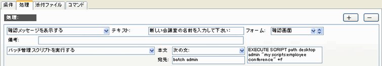 アプリケーションルールの[バッチ管理スクリプトを実行する]を動作させる場合は、SETBASE +USERコマンドを現在のユーザのデスクトップから使用できます。
