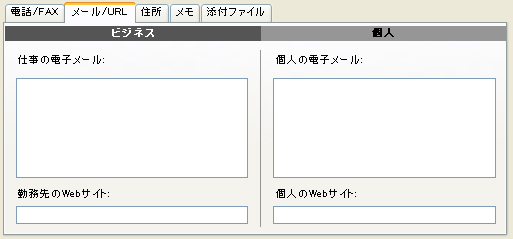 このタブを使用して、ビジネス用と個人用の電子メールアドレスとURLを入力します。
