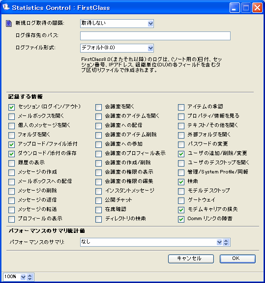 サーバパフォーマンスのサマリをユーザ統計値ファイルに出力する間隔を選択してください。