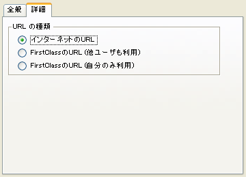 このタブを使用して、URLの種類およびリンク先オブジェクトへのアクセスに必要な接続情報(該当する場合)を指定します。