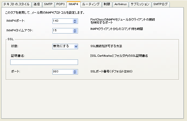 デフォルト設定です。IMAP4のSSLが無効になります。