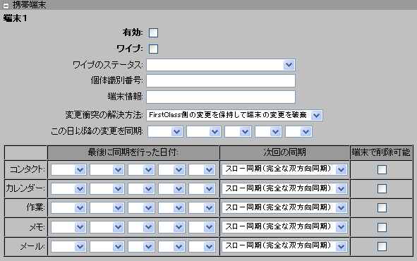 FirstClassに同期されている携帯端末上のデータを削除できるようにする場合に、このチェックボックスを選択します。