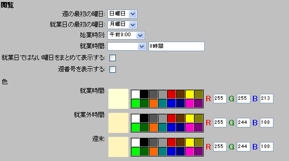 このセクションを使用して、カレンダーの表示オプションを設定します。