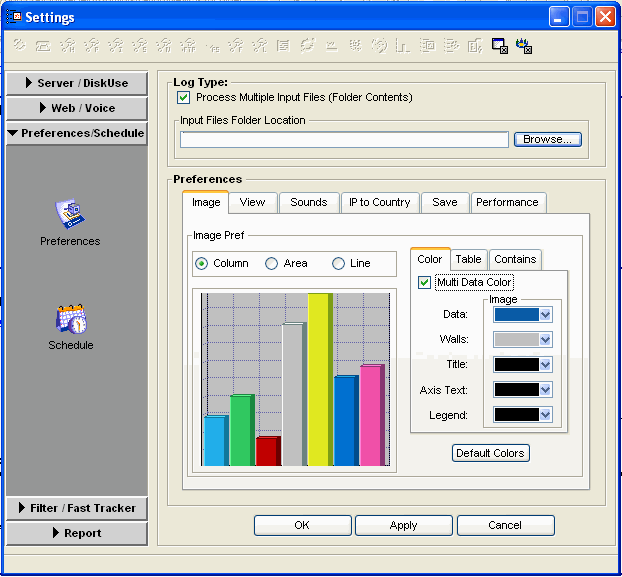 グラフの罫線は[その他]タブで表示と非表示を切り替えます。すべての色属性をリセットしてデフォルトに戻すには、[デフォルトの色]をクリックしてください。