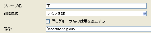 組織単位を利用すると、名前が重複するエントリをディレクトリに登録できます。[グループ権限]フォームで[OU内部で、同じグループ名の使用を禁止する]を選択すると、それぞれ異なる組織単位に所属している2名のユーザを、全く同じ名前でディレクトリに登録できるようになります。例えば、経営管理課に須田礼子というユーザがいても、経理課に須田礼子という別のユーザを登録できます