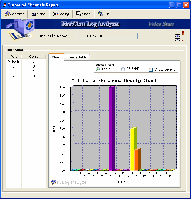 To view the summary chart of the total hourly outbound calls through a specific port:
