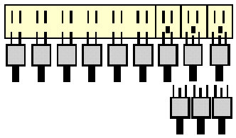 次の例は、セッションライセンスを購入した場合です。セッションライセンスの購入によってネットワークセッション(差し込み口)の一部が3ピン対応に変更されたため、リモートユーザ(3ピンのプラグ)にもレギュラーユーザ(2ピンのプラグ)にも対応可能です。ただし、リモートユーザは、所有するセッションライセンス数と同じ数の差し込み口しか使用できないことにご注意ください。