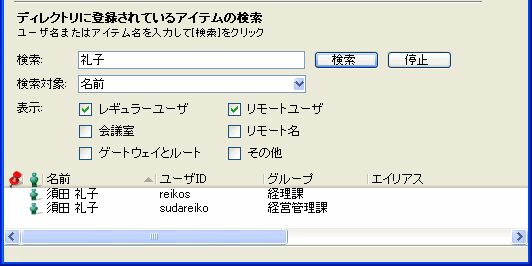 。ディレクトリで須田礼子を検索すると、下図のように表示されます。