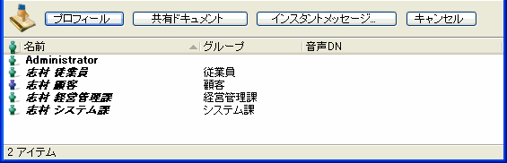 しかし、FirstClassディレクトリでは、「システム課 志村」のグループには「システム課」が表示され、「経営管理課」は表示されません。