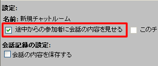 会話内容を最初から表示させるには、[途中からの参加者に会話の内容を見せる]を選択してください。