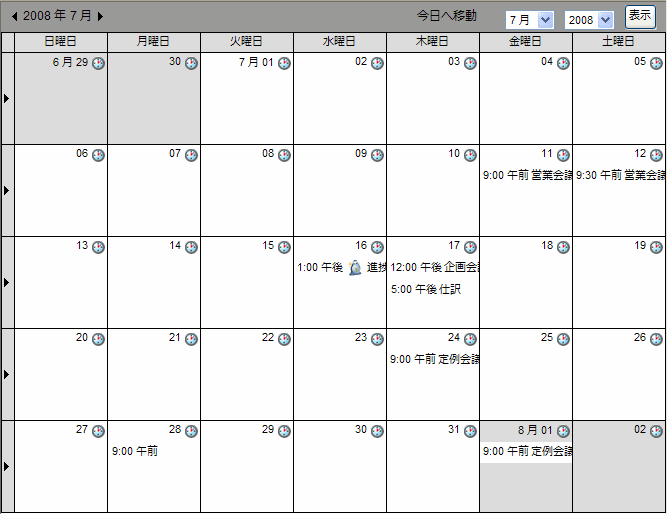 月表示から特定の週の週表示に移動する
