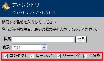 ディレクトリ一覧に表示されるエントリの数は、特定の種類のエントリだけを検索することによって絞り込みできます。[ディレクトリ]ウィンドウには、4つの種類に対応する次のチェックボックスがあります。
