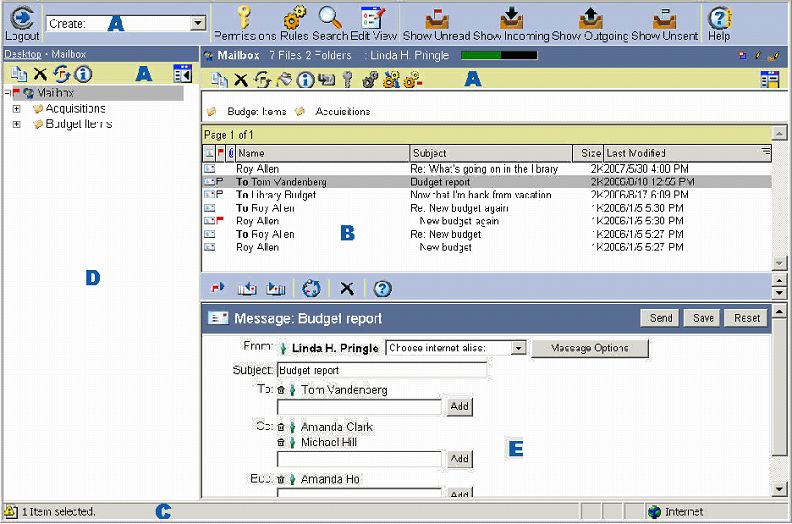 B メッセージなど開いたコンテナやオブジェクトの内容を表示するメインペイン