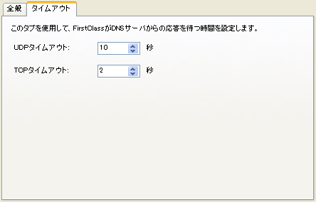 このタブを使用して、FirstClassがDNSサーバからの応答を待機する時間を指定します。