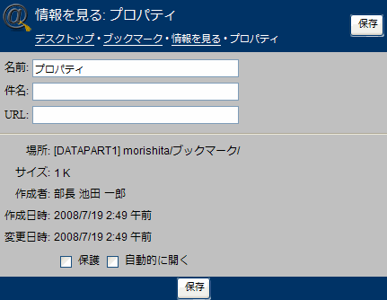 に保存されたブックマークについての情報を表示します。