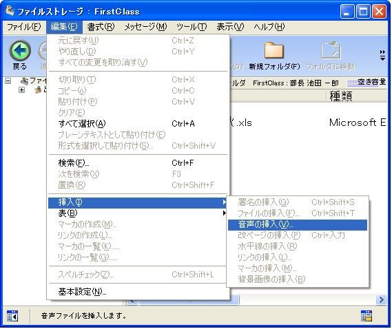 2       [編集]>[挿入]>[音声の挿入]を選択します。