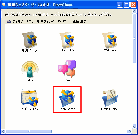 フォルダを階層化してWebページを保存することもできます。サブフォルダは、Webフォルダとフォルダの一覧のどちらの中にも作成できます。