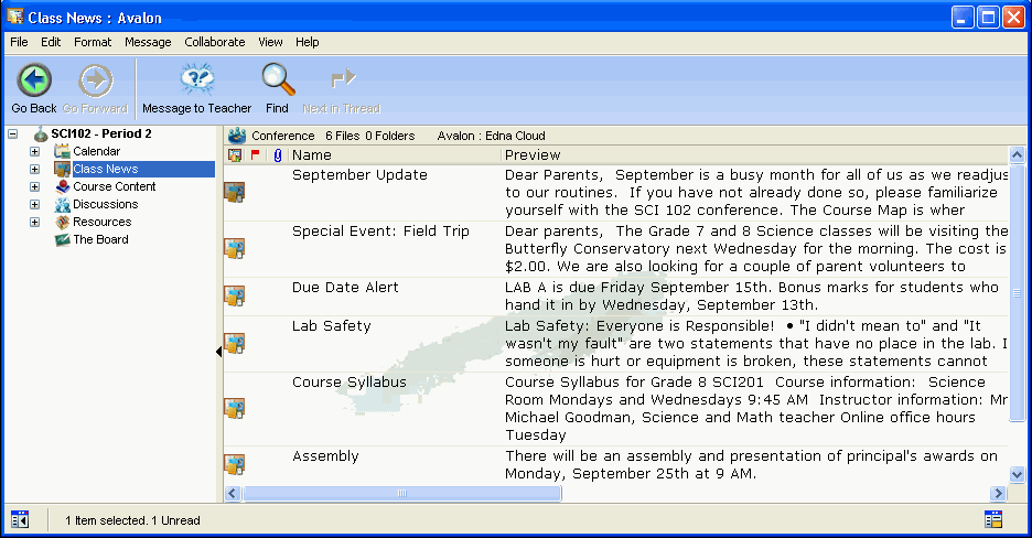 Your teacher(s) will post important class and school information in the Class News area of each class. Use this area to find out what is going on and what is coming up.