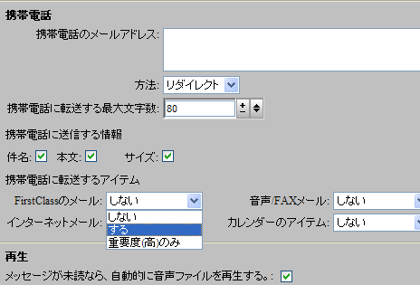 新着メッセージを携帯電話に転送するには、[基本設定]の[メッセージ]の[携帯電話]を編集してください。