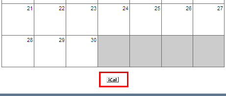 FirstClassのWebカレンダーはiCalendarの「フィード」をサポートしており、Webサイトの訪問者がこのWebカレンダーを自分の使用するカレンダープログラムに登録できるようになっています。この機能を実現するため、Webサイトで表示したWebカレンダーには[iCal]ボタンが追加されています。
