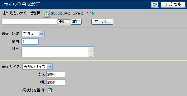 4 [埋め込むファイルを選択]でファイルを選択します。