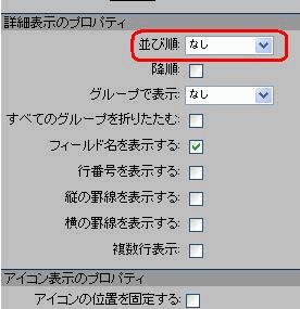 また、[表示のプロパティ]フォームの[並べ替え]タブで[降順]を選択して、昇順と降順を切り替えることもできます。