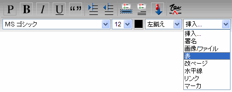 表の幅です。 2番目のフィールドで、この幅をページ幅(左マージンから右マージンまでの幅)に対する割合(%)で指定するか、または絶対値(ピクセル)で指定するかを選択してください。割合を指定した場合、ウィンドウのサイズが変わるたびに表のサイズも変わります。 |