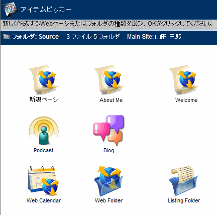 また、通常のWebページだけでなく、アップロードファイルの一覧(一覧フォルダ)、ブログ、ポッドキャスト、およびカレンダーも公開できます。このコンテンツをフォルダに分けて整理すると、Webページの表示順を設定できます。