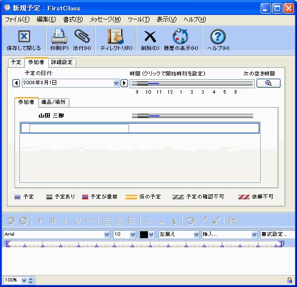 FirstClassは、通常の就業時間([基本設定]で設定)内で空いている時間帯を自動的に検出します。