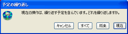 繰り返しの予定のうち、ある回の予定を変更して閉じようとすると、どの予定を更新するか確認するメッセージが表示されます。