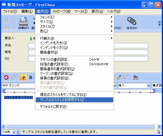 2       [書式]>[サンプルのスタイルを使用する]を選択します。