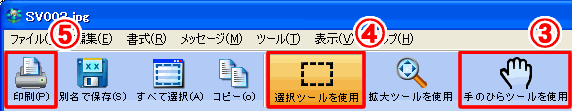 [手のひらツールを使用]ボタンをクリックし、続いて画像をドラッグして隠されている部分を表示します。