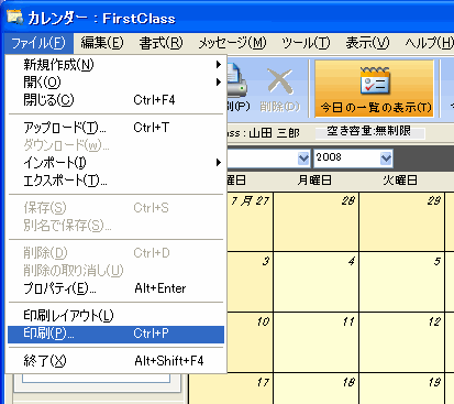 カレンダーをすぐに印刷するには、ツールバーボタンの[印刷]をクリックしてください。現在表示されているアクティブなペインが印刷されます。