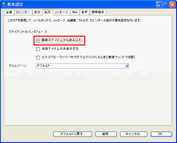 最新アイテムから最も古いアイテムの順に一覧表示するには、基本設定で[最新のアイテムを先頭に表示する]を選択してください。