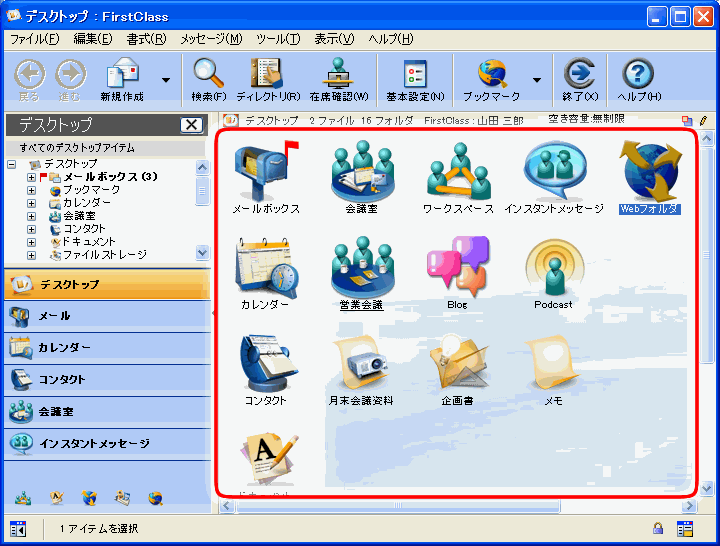メインペインには、デスクトップ、開いたコンテナ、またはメッセージなど開いたオブジェクトの内容が表示されます。メインペインは、単一のペインの場合と、分割バーで区切られた複数のペインになる場