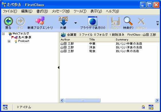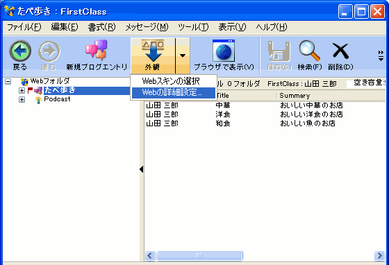 デスクトップ上のWebフォルダは、Webブラウザを使って他のユーザが表示できるコンテンツ(Webページ)を格納する場所です。Fir stClassは、WebフォルダのコンテンツをWeb上で公開します。