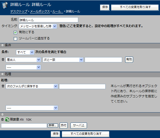 一部のルールでは添付ファイルを利用できます。