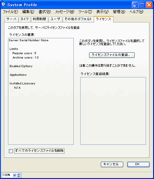 初めてサーバにライセンス登録する場合は、最初にサーバライセンス(拡張子:.KEY)を登録してください。それ以外のライセンスはどのような順序でも追加できます。