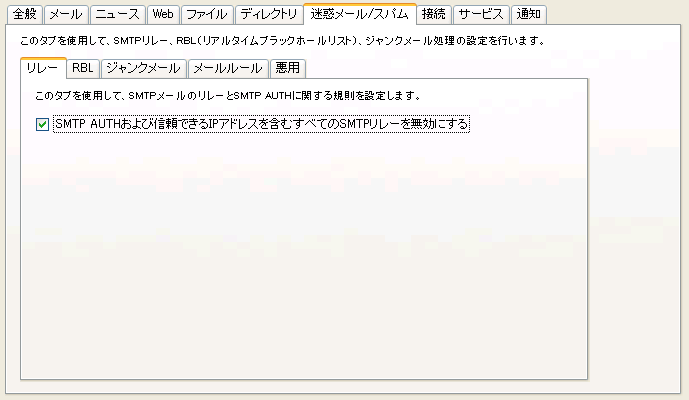 [迷惑メール/スパム]タブ-[リレー]タブ