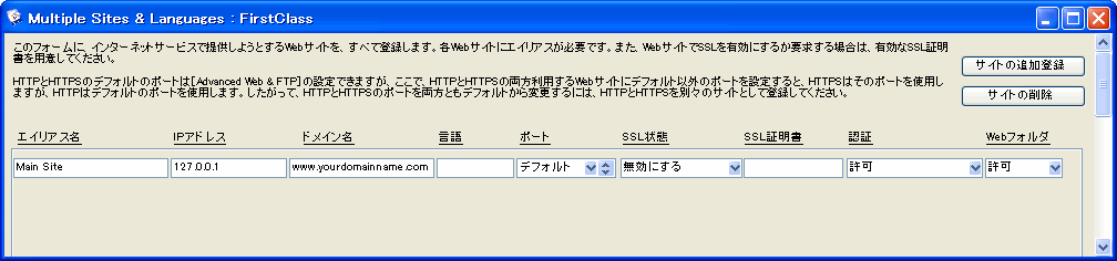 このフォームを使用して、異なる複数の言語でサイトを公開できます。また、1つのサーバで複数のWebサイトを運営できます。