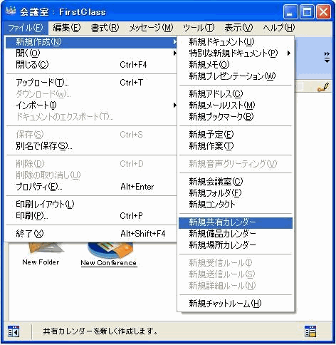 2       [ファイル]>[新規作成]>[新規カレンダー]を選択します。