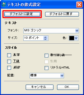 デフォルトのテキストスタイルとして使用する書式設定を指定できます。このためには、以下の操作を行ってください。
