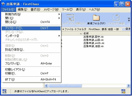 ファイルをコンテナにドラッグしてアップロードできます。ファイルをドラッグした場合、以降の手順は不要となり、ファイルの転送がすぐに開始されます。
