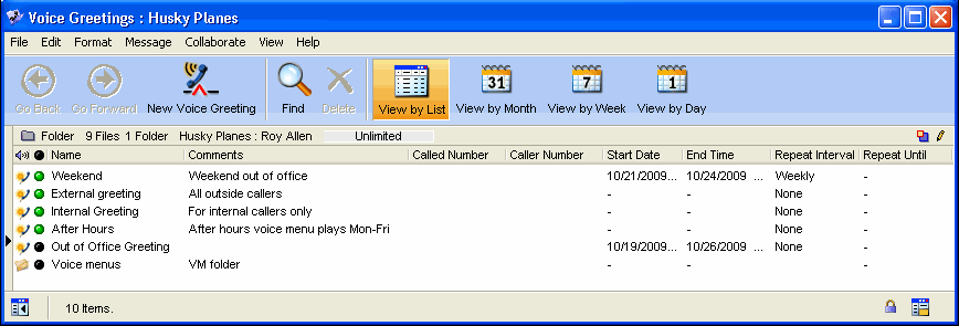 When the voice menu is612007_61958_6.pngings folder will look like this (there may be additional greetings):