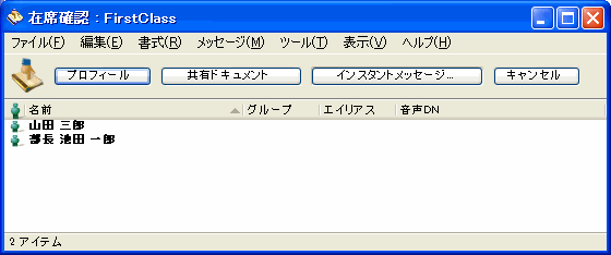 また、[ツール]>[在席確認]を選択すると、在席しているすべてのユーザの一覧を参照できます。
