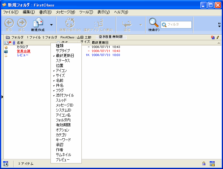1       (列見出し、または一覧内で選択したオブジェクトからではなく)一覧からコンテキストメニューを開いてください。